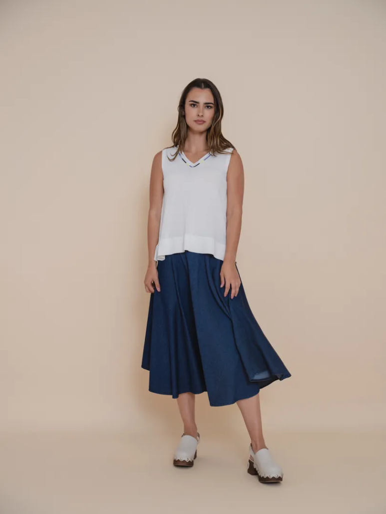 Camiseta de mujer sin mangas de la marca WNT Collection, una prenda fresca y versátil perfecta para la temporada de primavera-verano. Confeccionada en un tejido ligero y agradable al tacto, presenta un diseño en color blanco con cuello en pico y un sutil detalle en contraste que aporta un toque moderno y elegante. Su corte fluido y su caída suave hacen que sea muy cómoda de llevar durante todo el día, convirtiéndola en una opción ideal para combinar con faldas, pantalones o vaqueros en looks casuales y actuales. Esta camiseta blanca sin mangas para mujer es una prenda básica imprescindible en el armario de verano por su estilo sencillo y fácil de combinar.