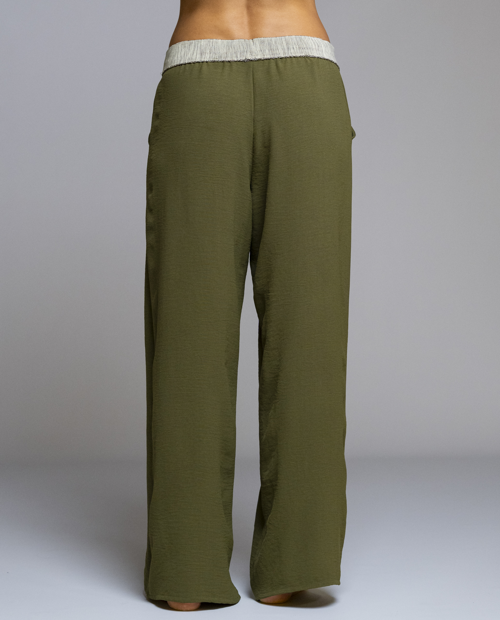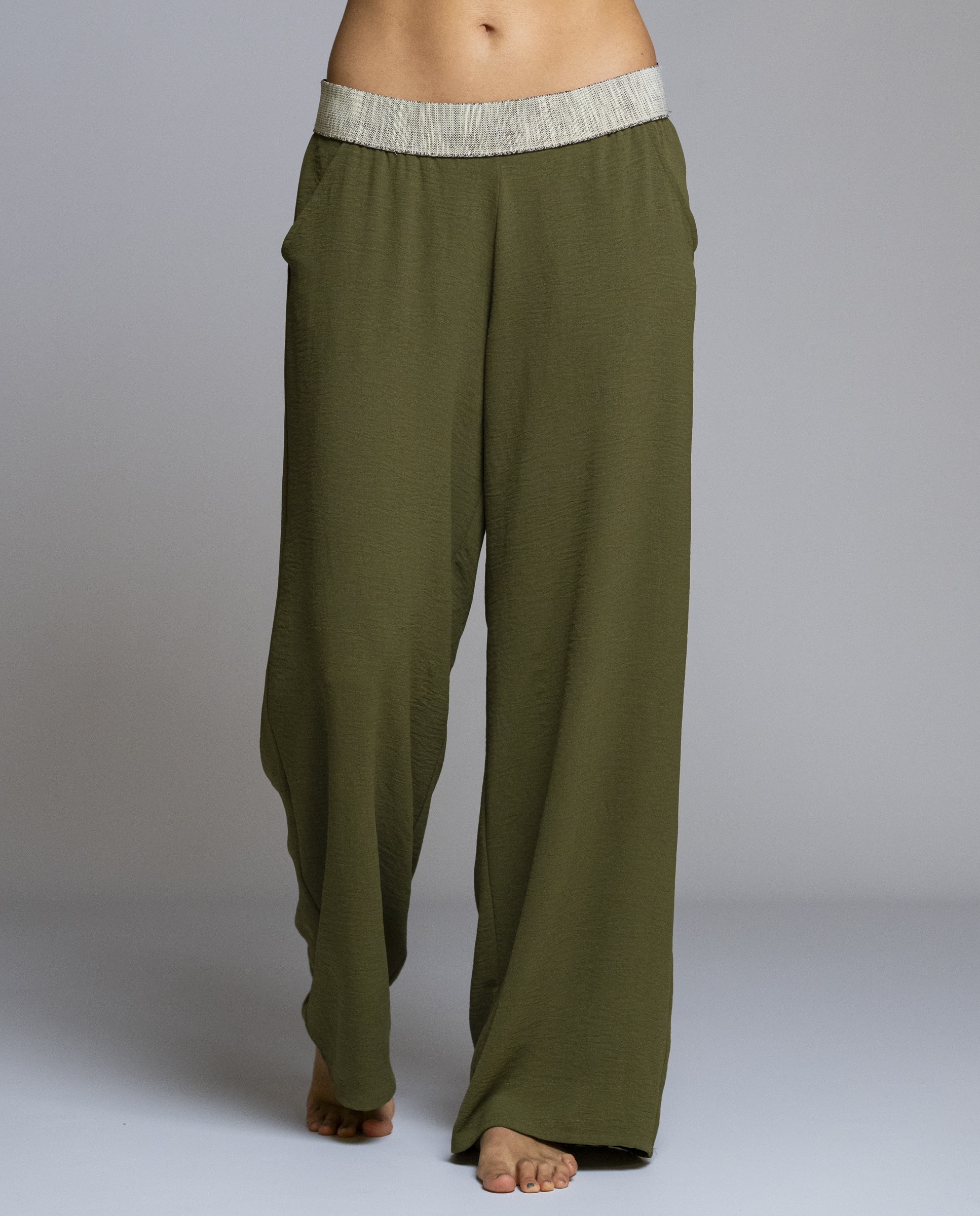 El pantalón de mujer Señoretta Alba en color verde caqui es una prenda cómoda y natural, ideal para looks relajados y cuidados en primavera–verano. Su corte recto y amplio ofrece una caída fluida que no marca y resulta muy agradable al llevar.