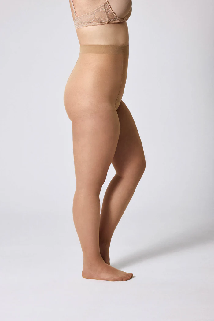 Su diseño antipresión se adapta sin apretar, proporcionando una sensación cómoda durante todo el día, incluso en tallas grandes. Incorpora puntera transparente, perfecta para usar con calzado abierto, y un acabado cuidado que estiliza la pierna sin marcar.