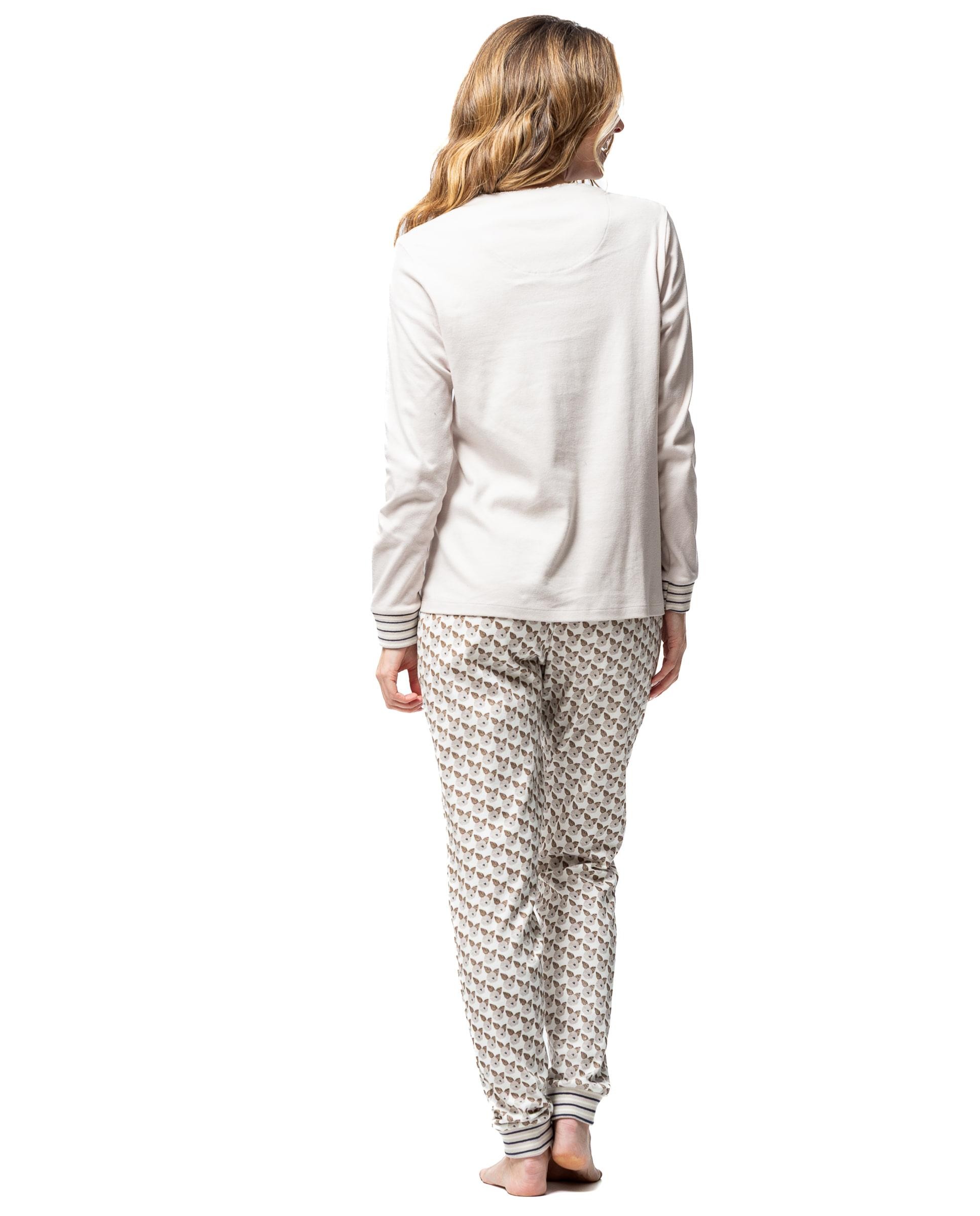 El pijama mujer Señoretta flores y mensaje está confeccionado en 100% algodón interlock, un tejido suave y cálido perfecto para el descanso. Su camiseta de manga larga presenta un delicado estampado floral con mensaje “Just for Life”, mientras que el pantalón combina un diseño de rosas con puños ajustados y cinturilla elástica. Ideal para las que buscan comodidad sin renunciar al estilo,