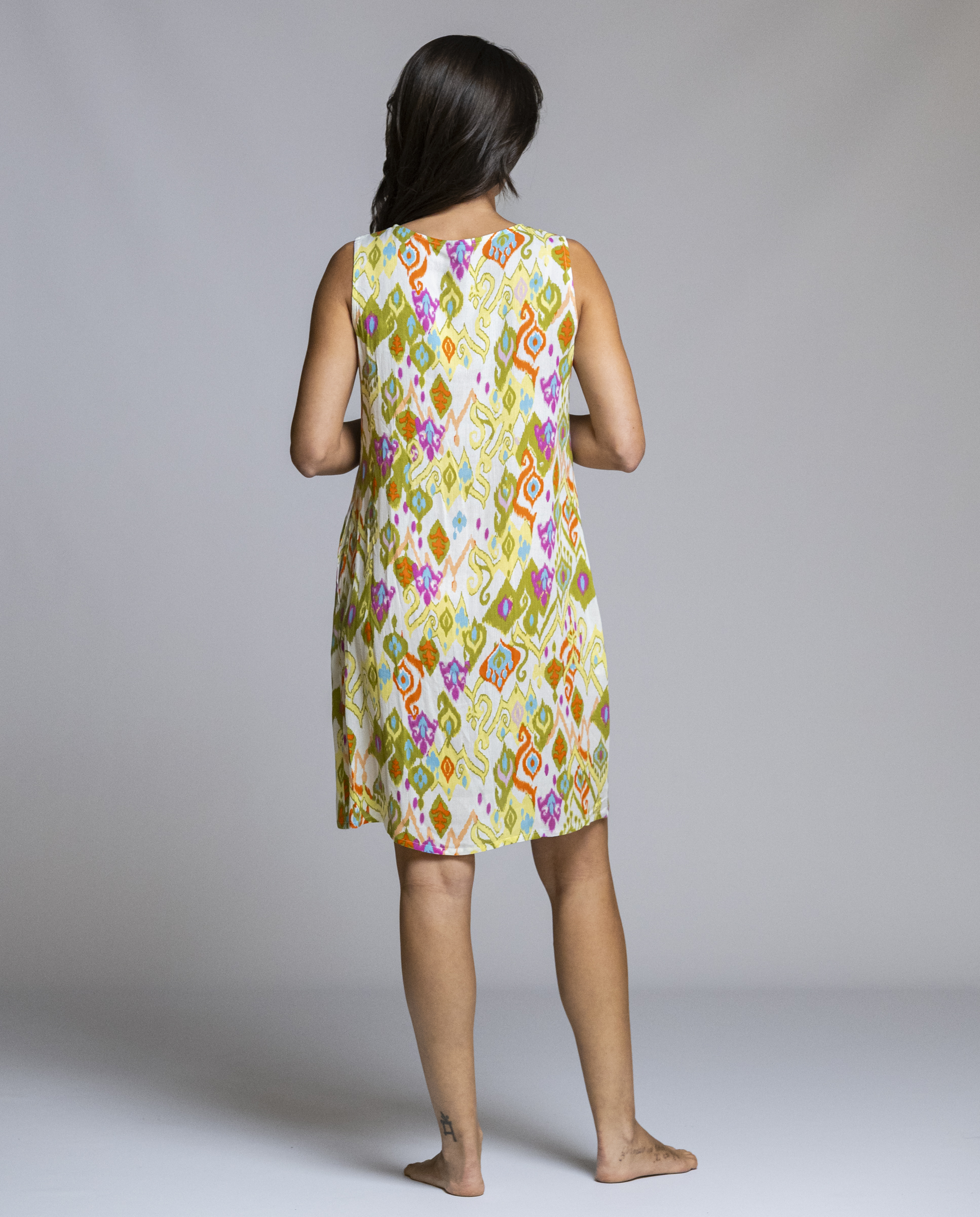 El vestido de mujer Señoretta REF: 261197 es una prenda fresca y cómoda, ideal para el verano. Su diseño sin mangas con escote en pico suave aporta un toque favorecedor y ligero, mientras que el corte recto y suelto permite una caída natural que no marca y resulta muy agradable de llevar. Destaca por su estampado geométrico multicolor, lleno de luz y movimiento, que aporta personalidad sin resultar recargado. Además, incorpora bolsillos laterales, un detalle práctico que suma comodidad al conjunto. Un vestido versátil y fácil de combinar con sandalias planas o cuñas para un look casual y veraniego.